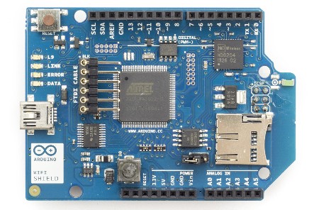 El Arduino WIFI Shield, es una placa que permite conectar tu Arduino a internet con la libraría para wifi y puede leer y escribir en tarjetas SD con la libraría SD.