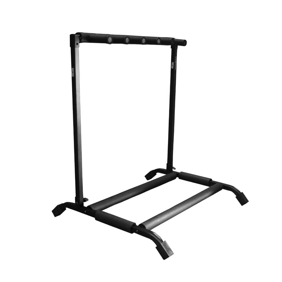 Atril para cinco guitarras. Fabricado en metal de alta resistencia, cuenta con revestimiento de goma para mayor seguridad de tus instrumentos. Adecuado para guitarras acústicas, eléctricas y bajos. Medidas: 70x60x70 cm (alto x fondo x ancho) Peso bruto: 2,8Kg Acabado en negro
