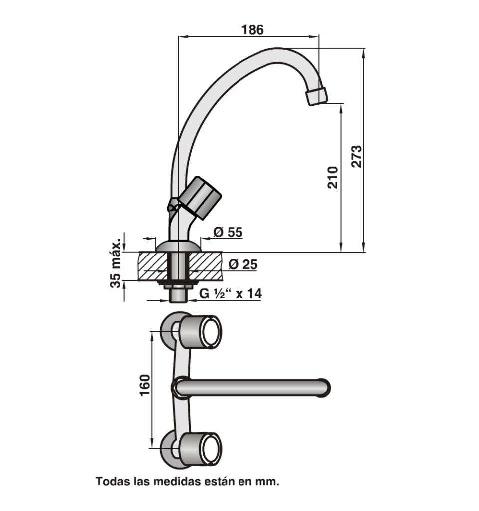 FV 0416/15 Allegro – Juego de Grifería para Mesada de Cocina 2 Aguas Pico Móvil.