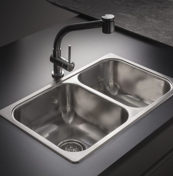 Pileta Doble Encastrar. Modelo: R63/18 F. Acero 304. La versatilidad de las piletas dobles tal como la R63/18 F nos permite obtener el máximo beneficio de una pileta amplia para el lavado y otra para el escurrido, característica de gran utilidad en espacios reducidos de mesadas sin necesidad de renunciar a las pretensiones de hoy en día.