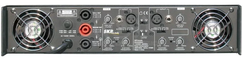 200Wy200W 4Ohm / 4 Canales mono XLR y entrada de linea TRS balanceado / Pantalla LED / 2 bandas de EQ por canal / EQ grafico de 5 bandas / y48V Phanton Power / 1 AUX